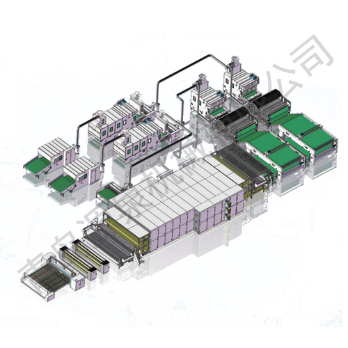 噴膠棉設(shè)備主要生產(chǎn)高彈噴膠棉、仿絲棉。熱熔、材等上膠、烘干、定型之用、設(shè)置前后(正反)噴膠,三層烘燥工作區(qū)。該產(chǎn)品廣泛應(yīng)用于服裝、床上用品、家具等。該生產(chǎn)線可根據(jù)客戶需求定制不同配置的生產(chǎn)線,如頭噴膠棉生產(chǎn)線,多機(jī)頭噴膠生產(chǎn)線等。